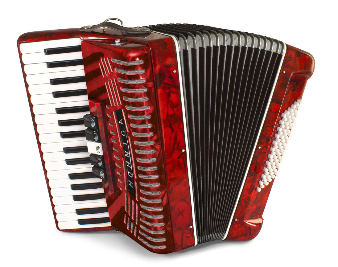 Piano Accordion with 34 Piano Keys and 72 Push-button Bass Keys - Pearl Red
