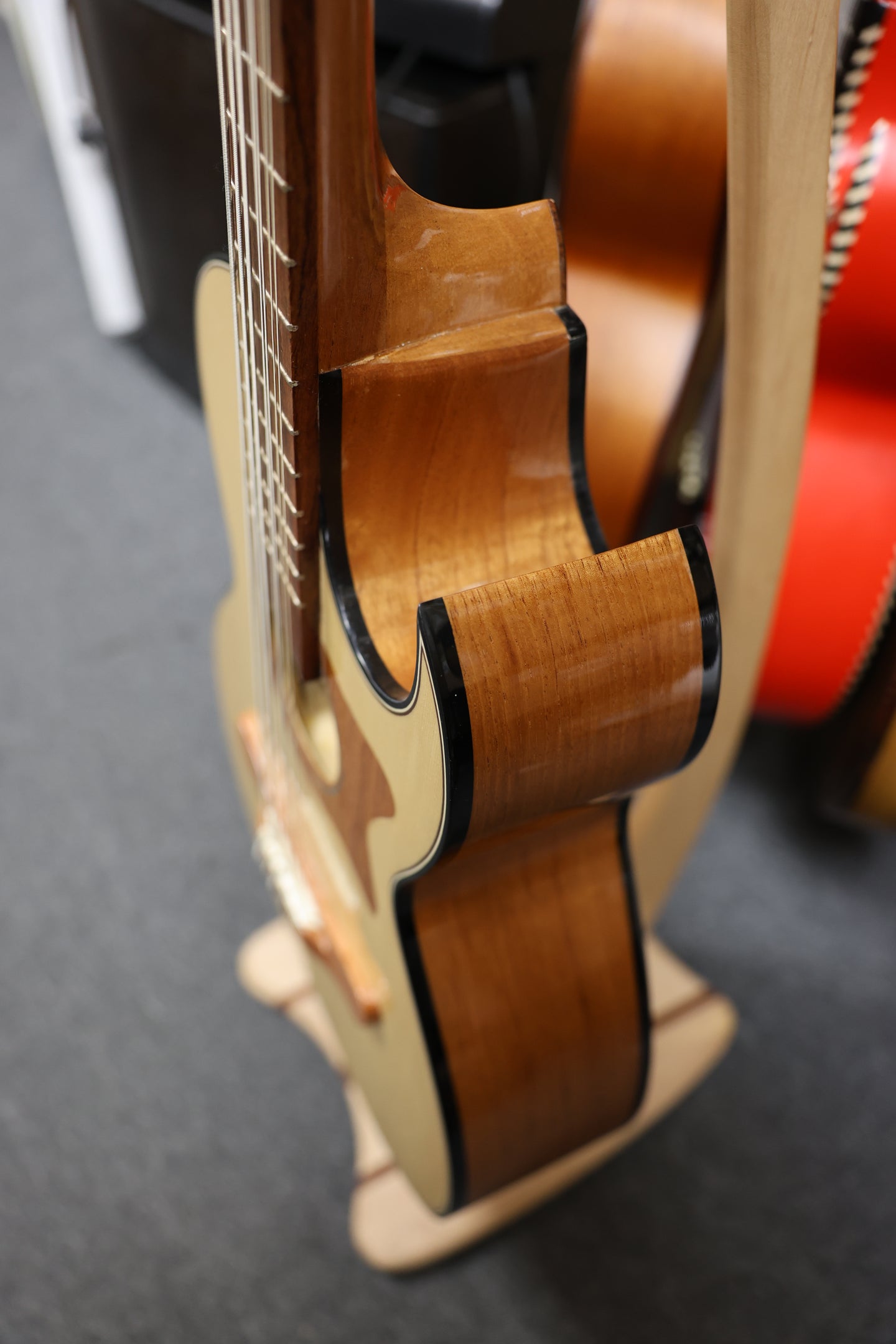 - Design: Elegant cutaway body with a smooth, glossy finish