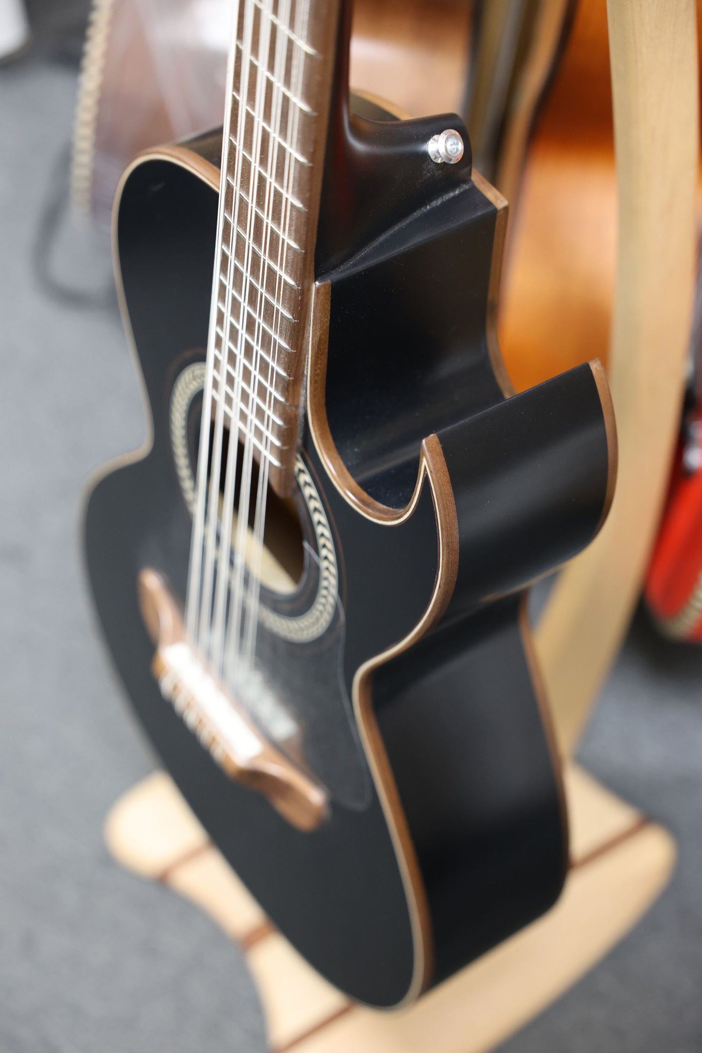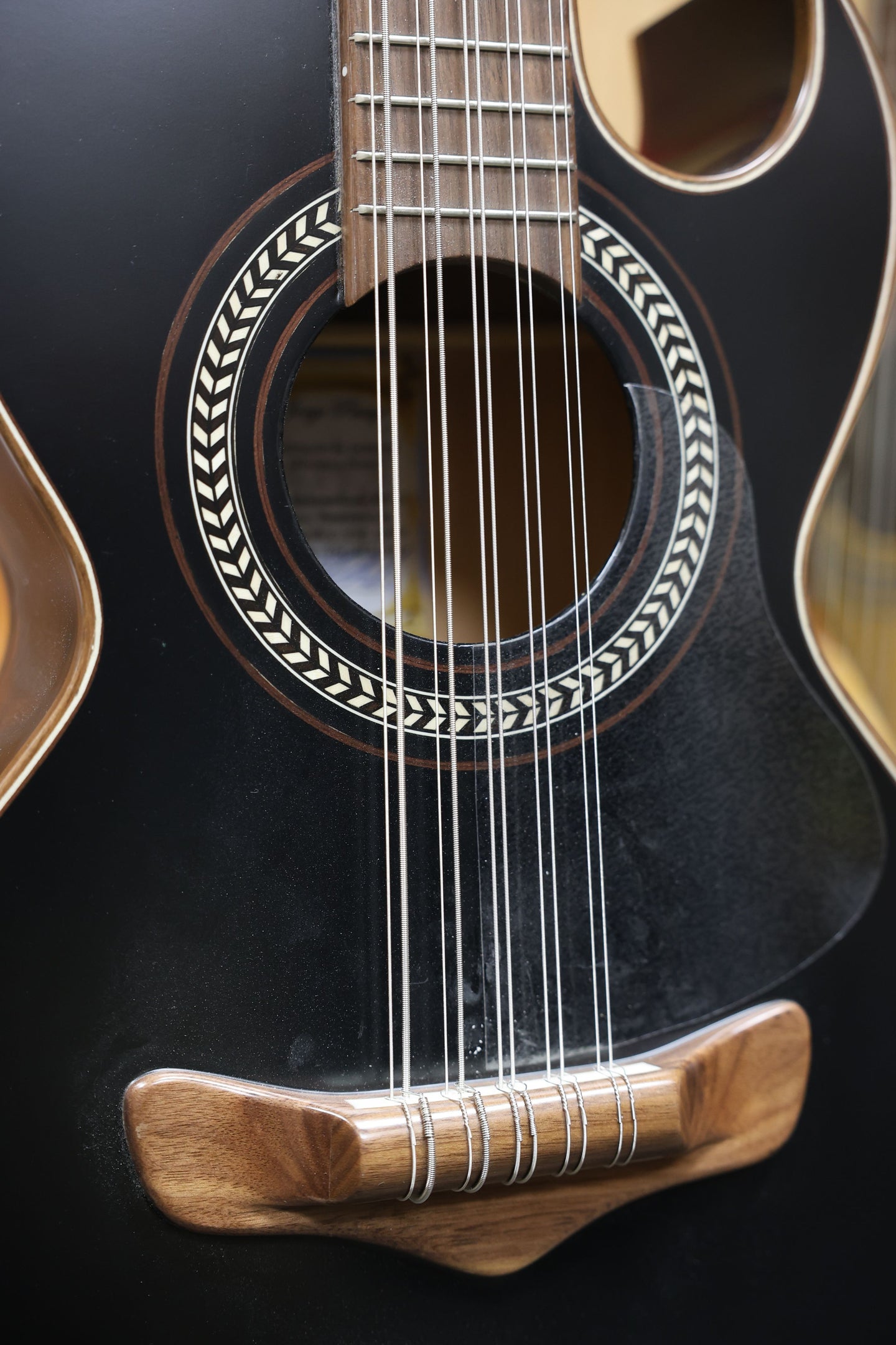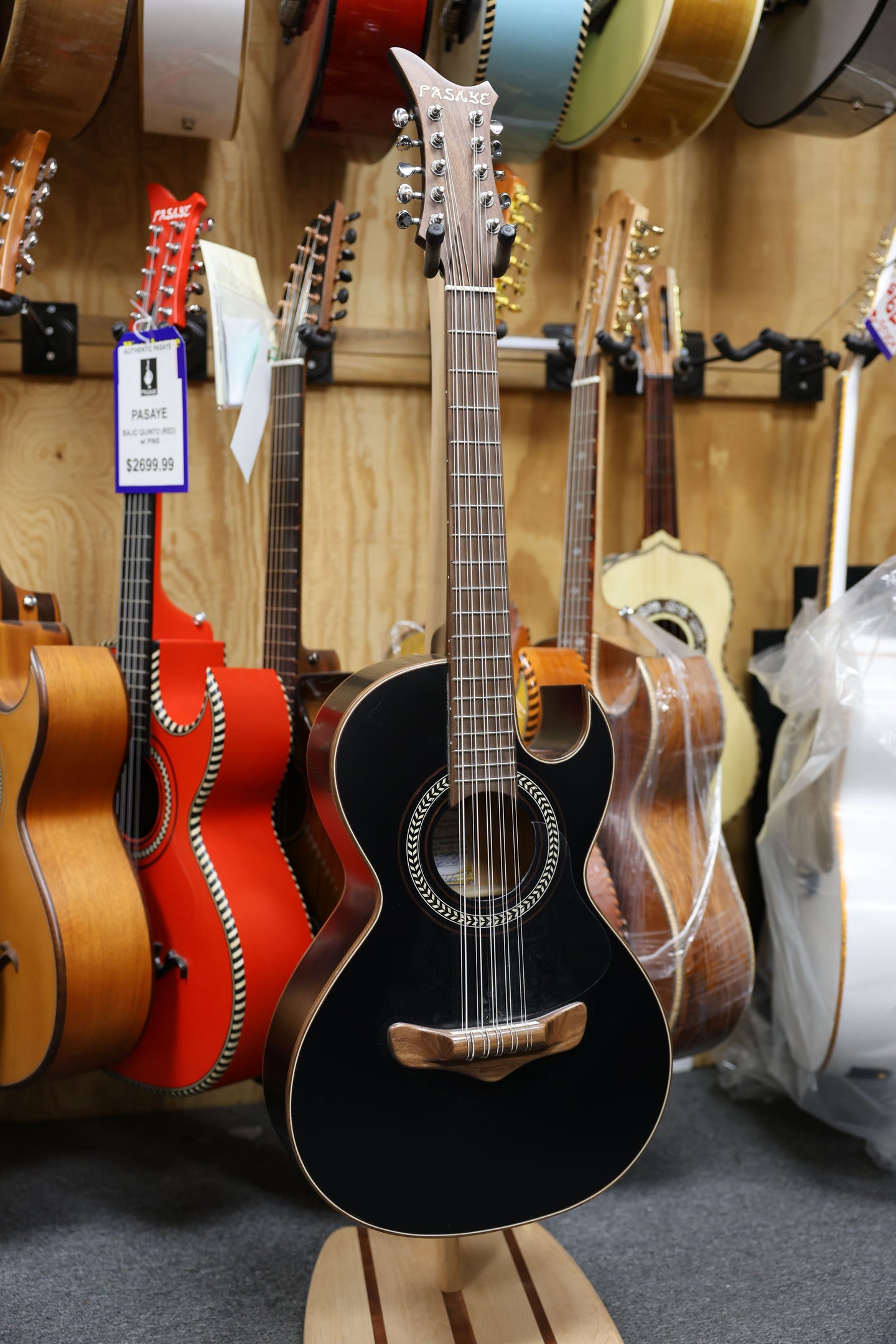 Experience the deep, resonant sound of traditional Mexican music with the Bajo Quinto Pasaye Black, a masterfully crafted instrument designed for both professional musicians and passionate enthusiasts alike. Each detail of this bajo quinto exudes quality and craftsmanship, from its sleek black finish to its precision-tuned strings.