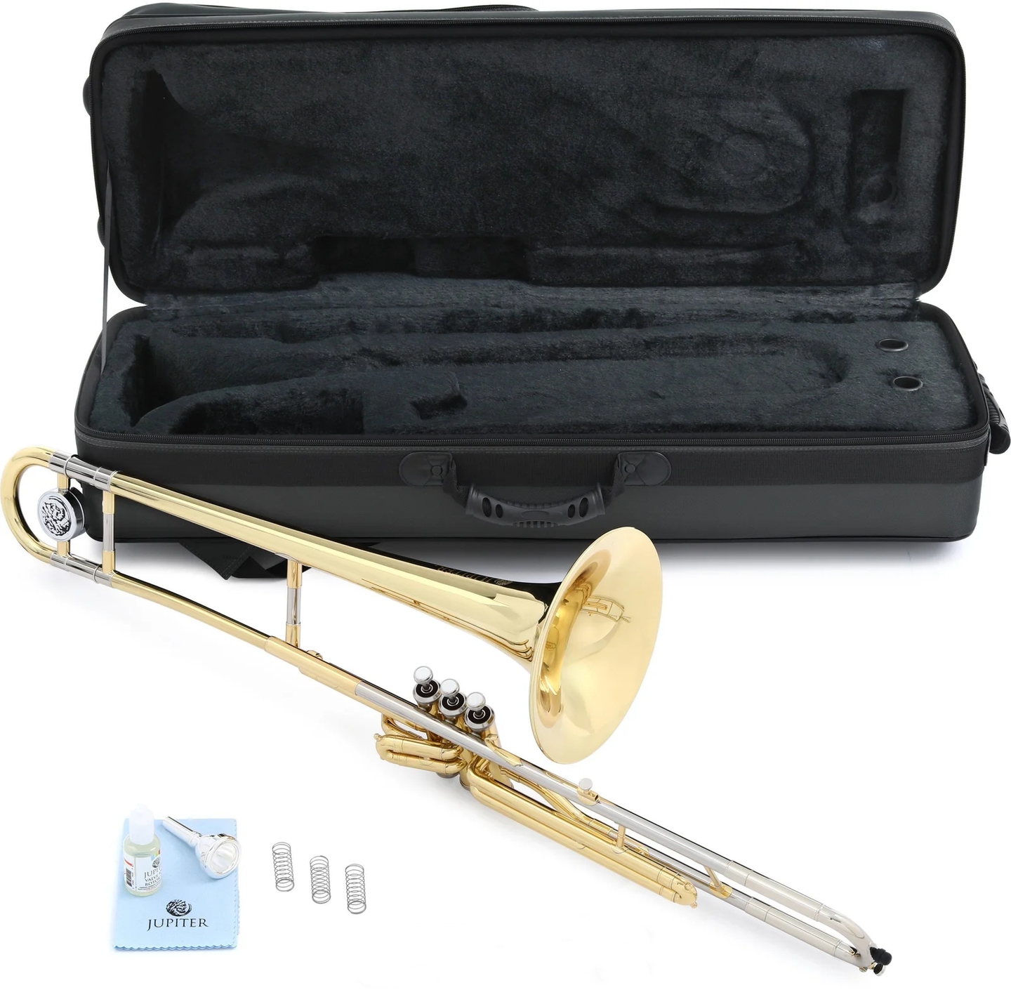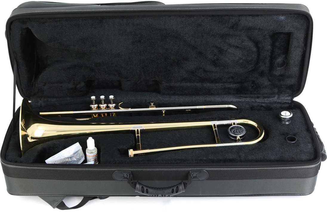 The Jupiter JTB720V Student C Valve Trombone is an excellent choice for beginners and advancing players seeking a smooth transition from other valve instruments. Designed with a compact wrap and responsive valves, this trombone is easy to play and provides a rich, clear tone. Its durable clear lacquer finish enhances the instrument's longevity and shine, making it both functional and visually appealing.