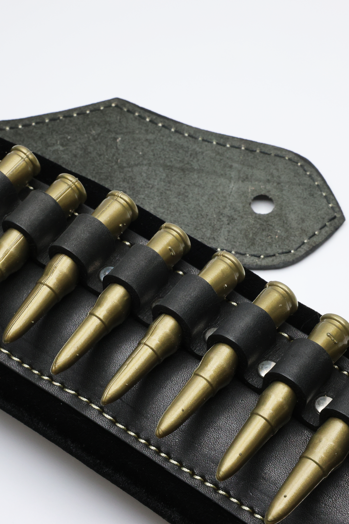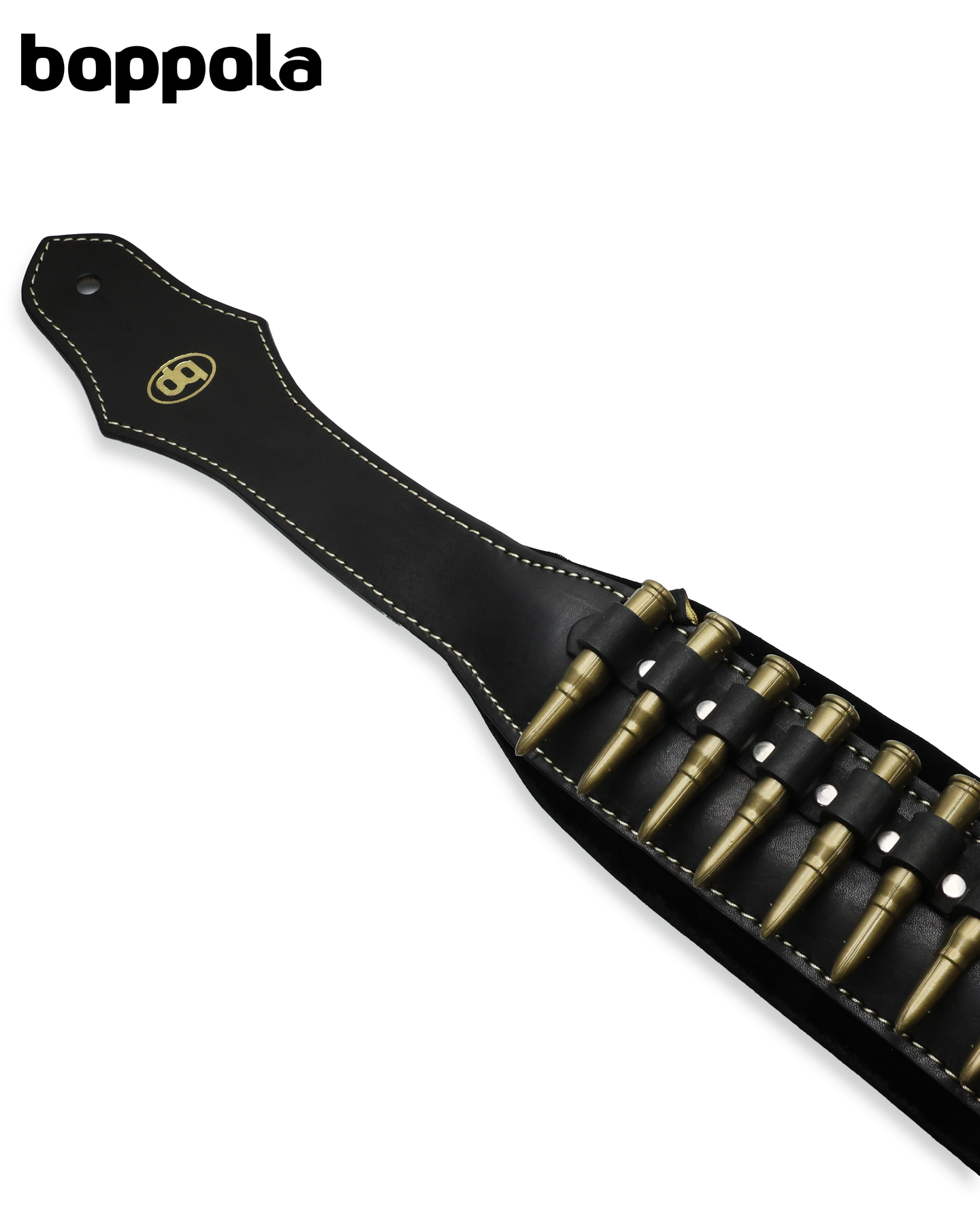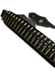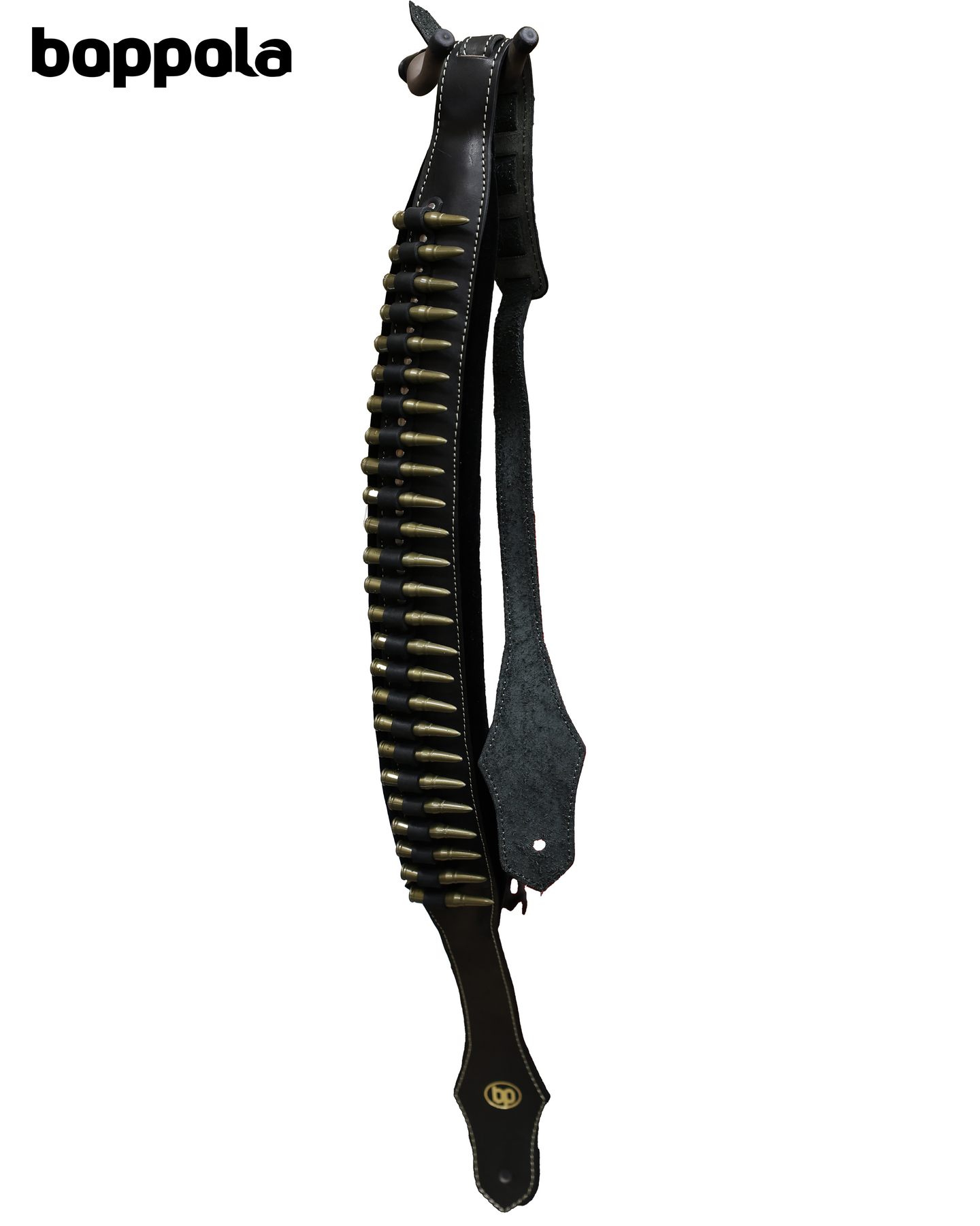 Boppola Tahli de Balas fake bullet guitar strap featuring bandolier-style cartridge loops with decorative imitation bullets. Adjustable strap fits electric, acoustic, and bass guitars for stage-ready style.
