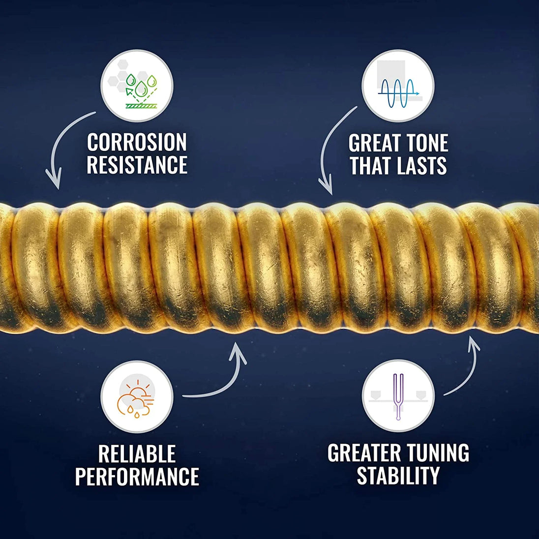 - Acoustic guitar strings constructed with phosphor bronze wrap wire